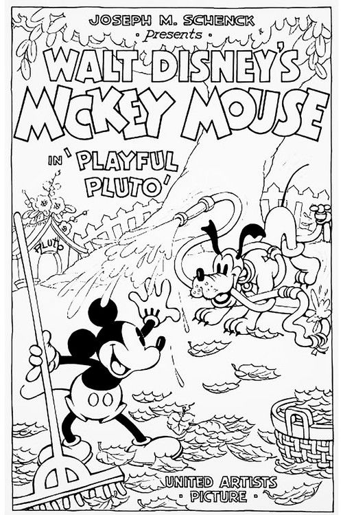 Mickey's trying to do some yardwork, but Pluto wants to play. They end up indoors; Mickey breaks a screen, spreads flypaper, and they both get stuck.