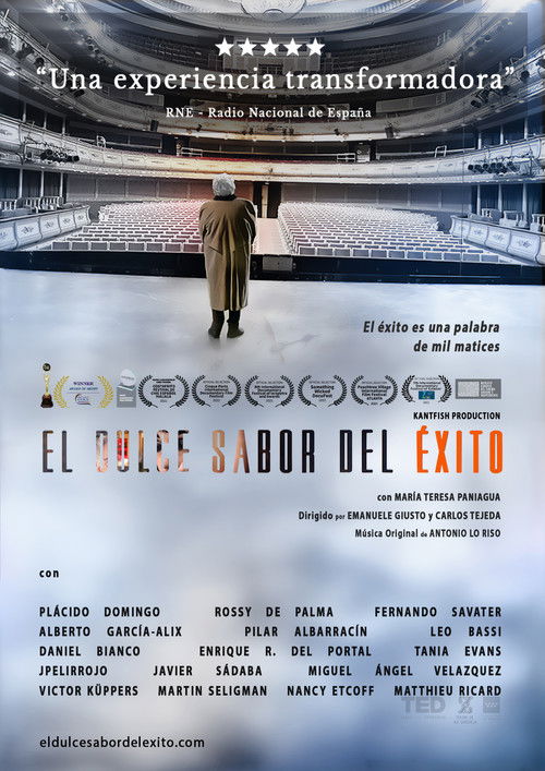 A transformative experience, this emotional documentary addresses some of the most pressing issues of the 21st century, reflecting on happiness, social connection, daily life, death, and aging, while exploring doubts about the "word of a thousand shades and somewhat perverse" concept of success. This film has the potential to change your life and your perspective on the true meaning of success. An intimate reflection on success, it features María Teresa Paniagua, a joyful and unique octogenarian Zarzuela singer. The documentary offers surprising insights from interviews with notable figures from the worlds of art, science, and intellectual thought, including actress Rossy de Palma, philosophers Fernando Savater and Javier Sádaba, tenor Plácido Domingo, monk Matthieu Ricard, psychiatrist Martin Seligman, Harvard professor Nancy Etcoff, and TED Talk speaker and writer Victor Küppers, among others. This documentary is a balm for the soul.