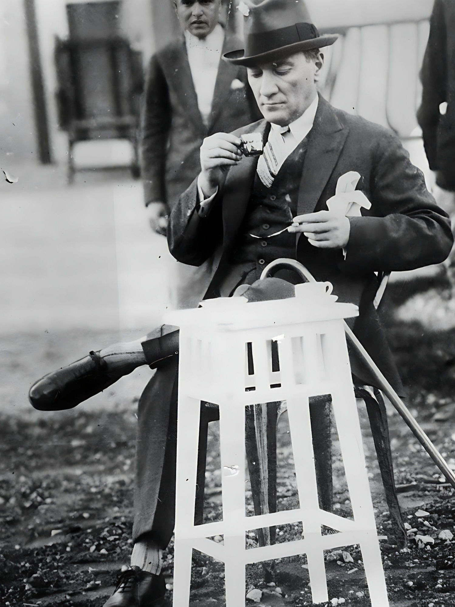 Various shots of Kemal Ataturk sat around a table with other politicians, he speaks, M/S profile of him. C/U of his successor General Ismet Inonu. L/S of Istanbul, various shots of the city, a truck drives down the street. M/S of Turkish women sat around threading leaves onto spikes. M/S of ladies being fitted for clothes. M/S of two oxen pulling a plough, M/S of a tractor pulling a plough. L/S of workers in a factory. A substance is poured into a big vat.