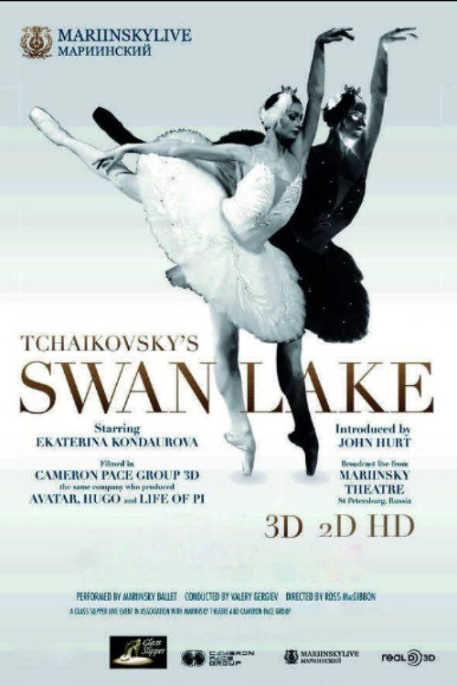 A spectacular special event edition of Swan Lake in 3-D starring Ekaterina Kondaurova and Natalia Vodianova, model, actress, and storyteller, was recorded and broadcast live from the historic Mariinsky Theatre St. Petersburg, Russia, the city where the world's most loved ballet was created. This was a 3-D live screening celebrating two hundred seventy-five years since Russian ballet started in the exquisite splendor of the Winter Palace.