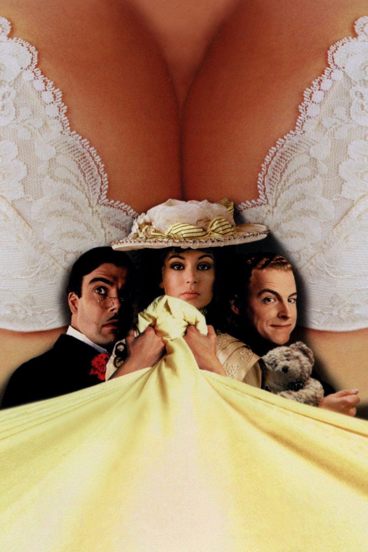 Stiff Upper Lips is a broad parody of British period films, especially the lavish Merchant-Ivory productions of the 'eighties and early 'nineties. Although it specifically targets A Room with a View, Chariots of Fire, Maurice, A Passage to India, and many other films, in a more general way Stiff Upper Lips satirises popular perceptions of certain Edwardian traits: propriety, sexual repression, xenophobia, and class snobbery.