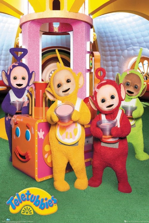 Pre-school fun, fantasy and education with colourful rotund characters Tinky Winky, Dipsy, Laa-Laa and Po in a magical land called Teletubbyland.