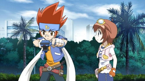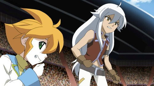 Phoenix arrives in the nick of time to help Kenta and Hyoma. Gingka's battle with Reiji at Battle Bladers heats up.
