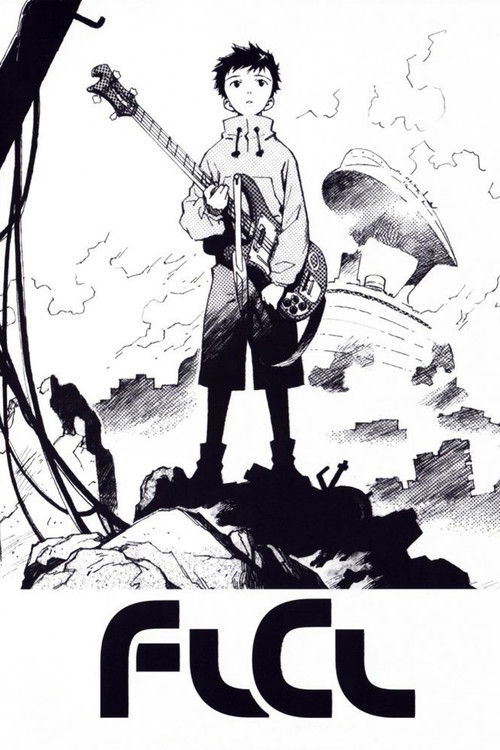Naota is a normal boy who kills some time with a normal girl by a stream that flows underneath a bridge. Nothing unusual happens in this town. The fact that Haruhara Haruko crashes into the main character with her Vespa a short while later and subsequently hits him over the head with her Rickenbacker 4003 bass guitar doesn’t really make any difference to any other day here. The at first glance unconnected, bizarre events that don’t seem to follow any pattern whatsoever don’t change anything about Naota’s boring life, either – because nothing incredible ever happens in this town.